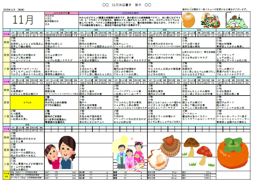 11月後半のお食事も美味しい献立ばかりです(^_-)-☆