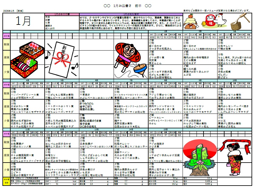 令和8年1月のお食事メニューです(^^♪