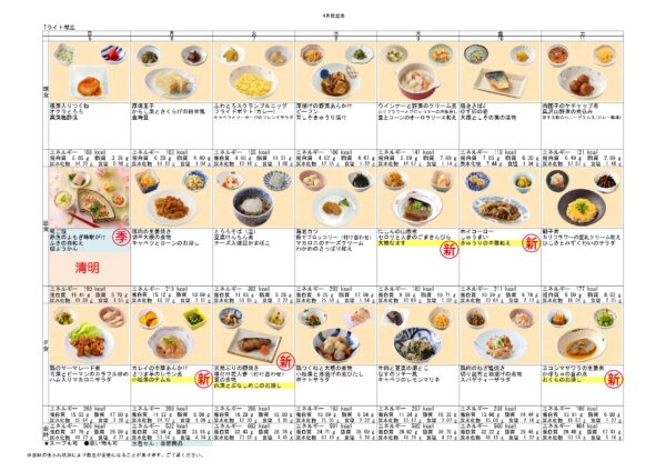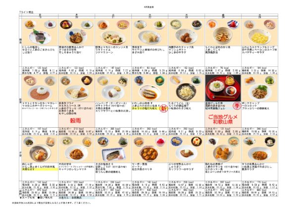 4月のお食事メニューです♪