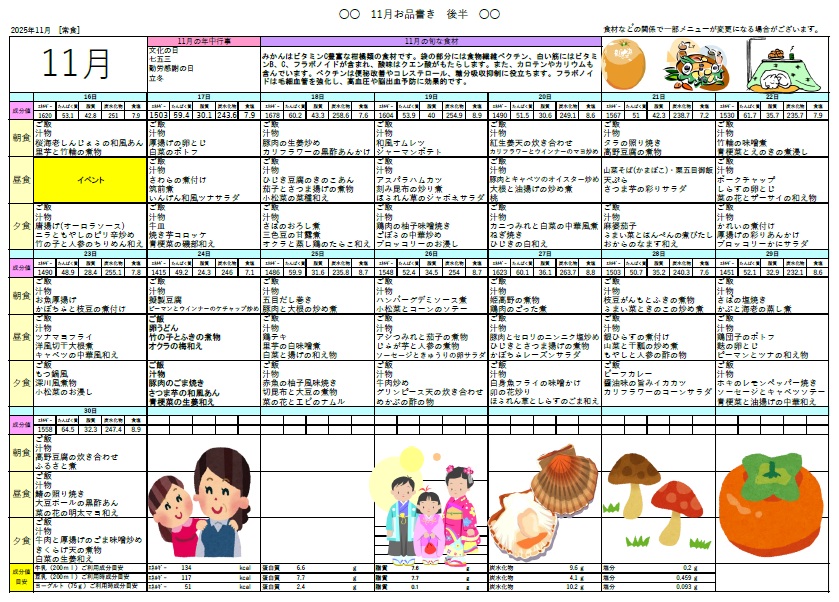 11月後半のお食事も美味しい献立ばかりです(^_-)-☆