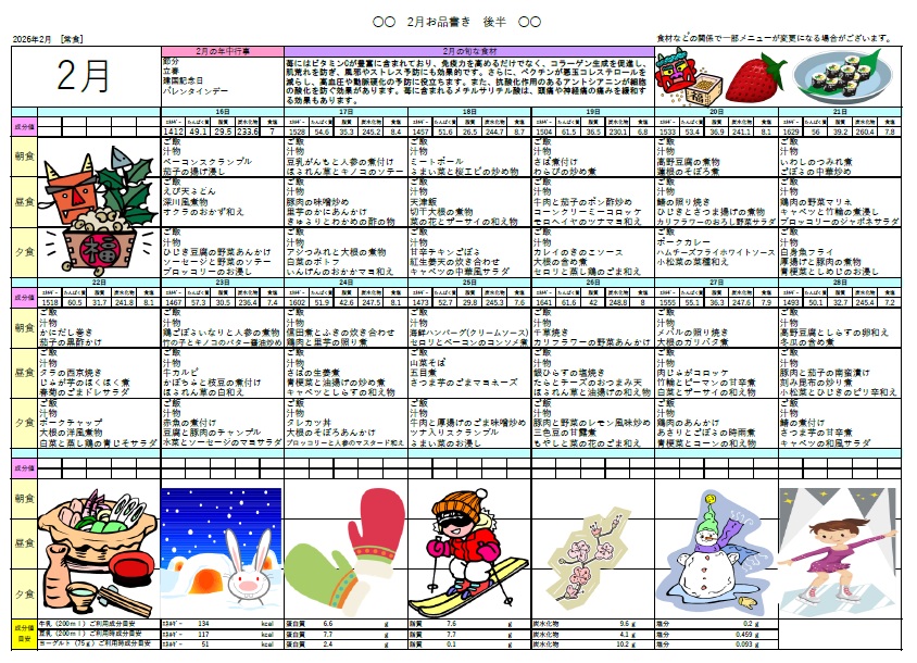 2月後半のお食事メニューです(^^♪