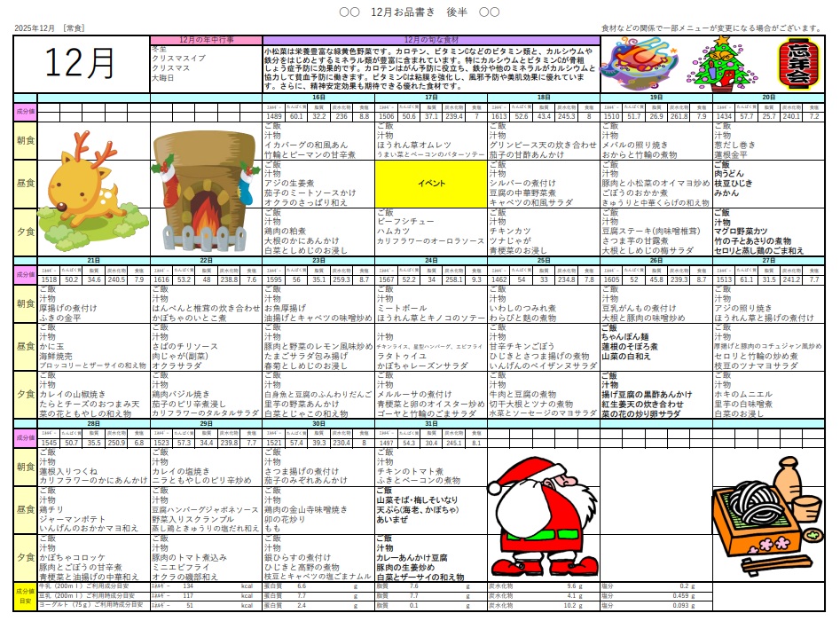 元気に来年を迎えられるよう暖かい食事で元気に過ごしましょう♪